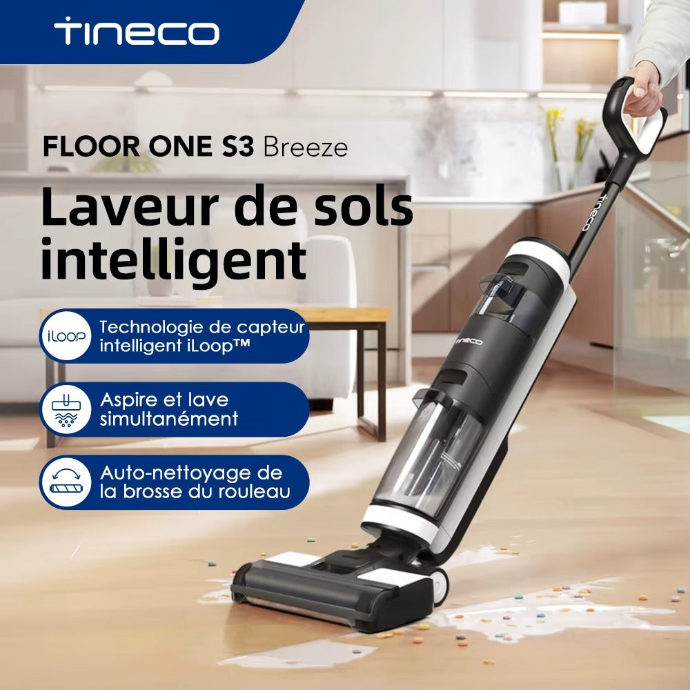 Tineco Floor One S3 Breeze combine aspiration et lavage en un seul passage. Son système auto-nettoyant et ses capteurs intelligents détectent la saleté et ajustent la puissance automatiquement pour un nettoyage parfait.
